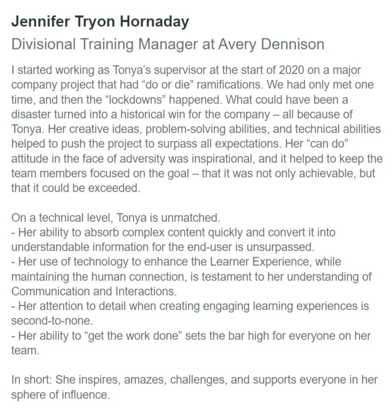 Hear what past colleagues have to say about me.